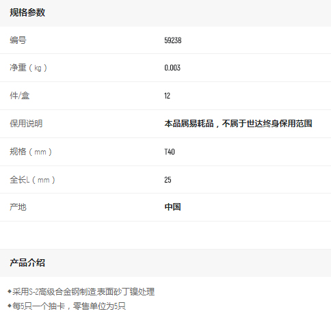 產(chǎn)品名字:世達(dá)5件6.3mm系列長(zhǎng)花形旋頭T40