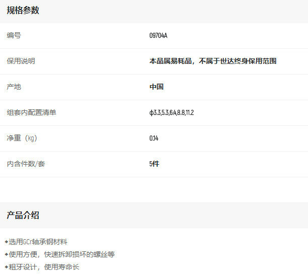 產(chǎn)品名字:世達(dá)5件粗牙斷絲取出器組套
